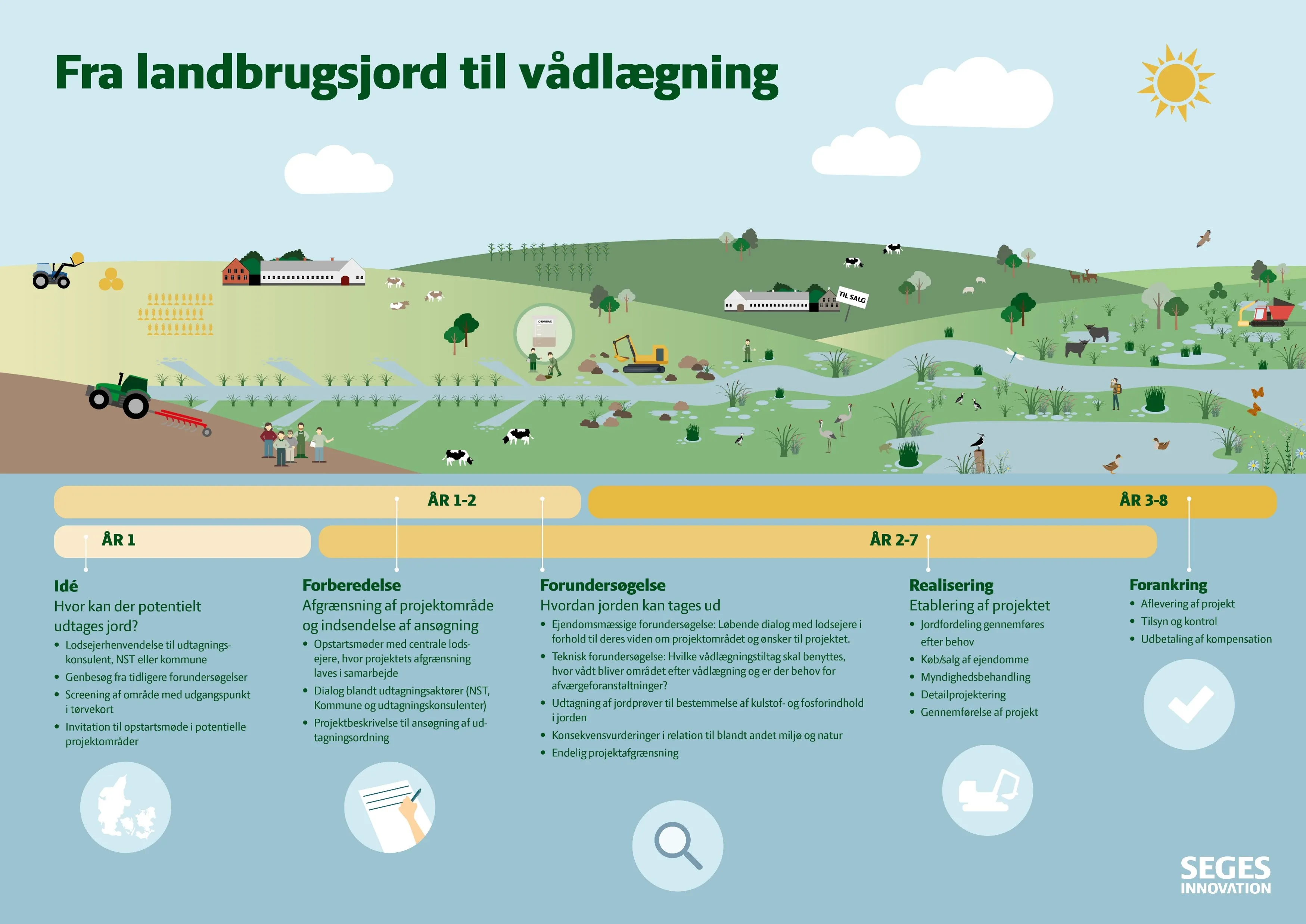 Illustration af typiske tidslinjer for etablering af et vådområde- eller lavbundsprojekt